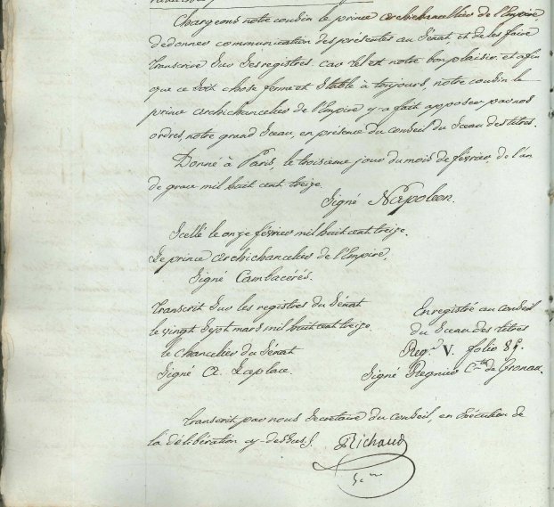 Ainsi, par la charte du 11/02/1813 Napoléon Ier autorise la ville d’Arles à utiliser à nouveau ses armoiries. Cet acte fait suite à la demande du maire de la ville d’Arles, Monsieur de Grille, auprès du prince Cambacérès, archichancelier de l’Empire (document 1).