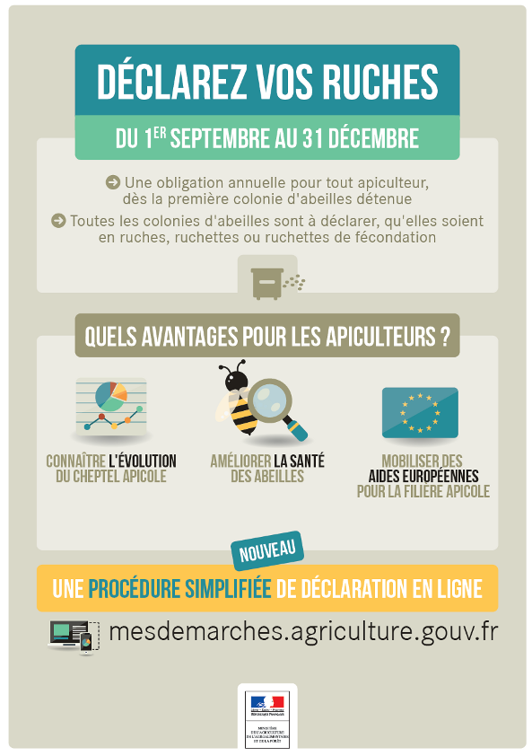 Depuis le 1er janvier 2010, toute personne (particulier, groupement, association, apiculteur…) qui possède un rucher, que ce soit pour une activité de loisir ou une activité professionnelle, doit le déclarer dès la première ruche.